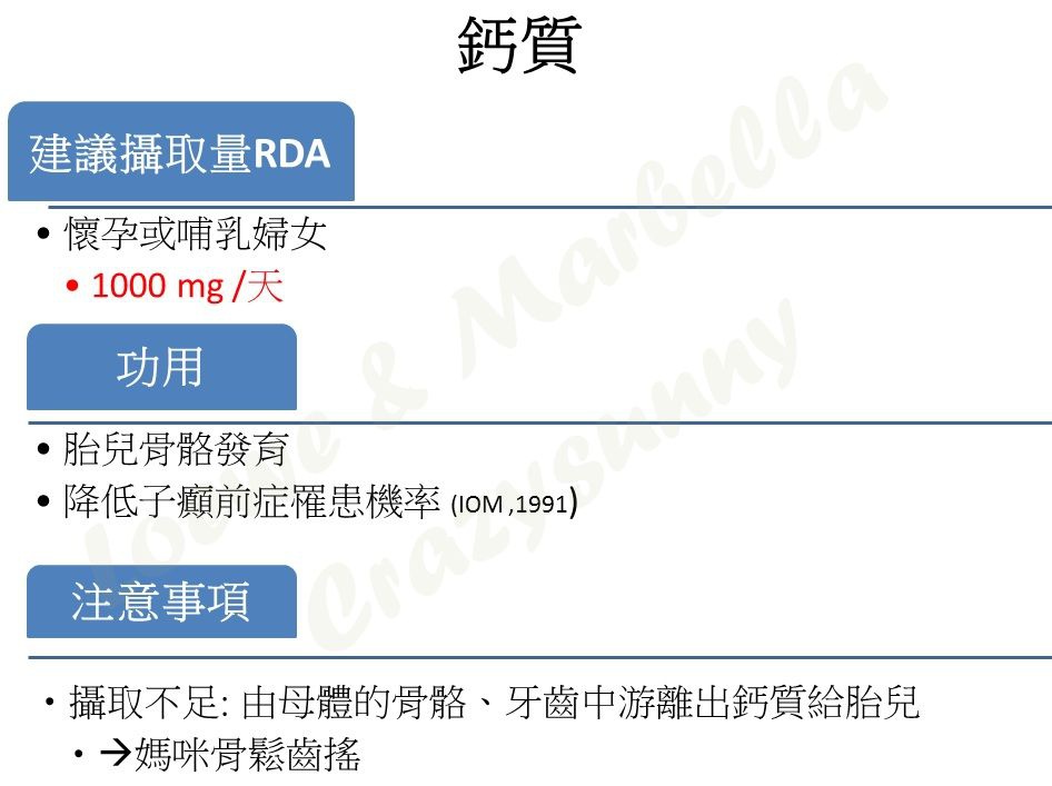 孕期營養(二):<維生素礦物質補充: 鐵、鈣、維生素D>